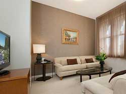 FAMILY ROOM Rates include complimentary continental breakfast daily, foxtel channels, Wi-Fi access and use of the business centre and communal kitchens. Bedding configuration is 1 king bed and 2 double beds (Rate is based on 4 people). |