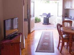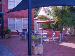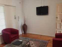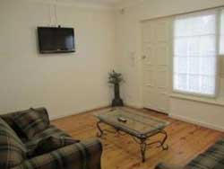 HERITAGE APARTMENT Fully self-contained, this two bedroom heritage style apartment offers apartment accommodation at its best. The open plan living area offers a dining table, lounge chairs, coffee table and flat screen television with foxtel. Enjoy the convenience of a fully equipped kitchen, complete with gas hot plates, oven, toaster, microwave, dishwasher, full size fridge, crockery and cookware. The main bedroom features a queen size bed with additional single bed and the second bedroom has two single beds. Bathroom also laundry facilities and the apartment has a private courtyard entertaining area with barbecue and outdoor setting. You will also enjoy the security of off-street car parking for one car. |