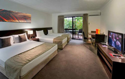Accommodations Choose from 144 spacious, well-appointed rooms, offering views across the lake, swimming pool or through the tropical gardens. All rooms have Austar, broadband connection and Pay Movies. Enjoy Townsville's largest hotel free form swimming pool with separate spa area and beach entry children's area. Hit a few balls around on our two full sized Day and Night tennis courts. |