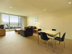TWO BEDROOM APARTMENT Two bedroom apartments featuring a self-contained kitchen, DVD Player, reverse cycle air conditioning, spacious living and dining area. The room caters for a maximum of 5 adults and a maximum of 4 children but cannot exceed 5 guests in total. Rates are for 4 guests. Includes 30 minutes continuous use of free internet per day. |