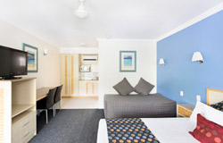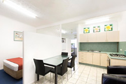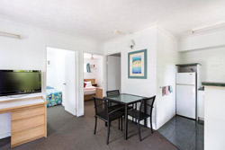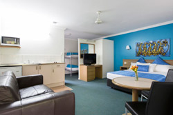 Family Room- Family rooms have a full kitchen and eating area. They are located on ground floor, close to the pool area and children’s playground. There is a queen bed separated from the 4 Bunks and kitchen area by dividing walls. Ideal for bigger families sleeping 2 adults and 4 children. Two Bedroom Apartments- Our 2 bedroom apartments have a kitchen, meals area, lounge and private veranda as well as 2 private bedrooms, each with their own air conditioning unit. It is ideal for families with a Queen in the master room and a single and 2 Bunks in the second bedroom. |