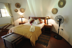 It's the perfect setting for a holiday visiting the amazing Victoria Falls and enjoying the wide range of activities around Livingstone before heading off to explore wonderful Zambia. It's also within easy reach of neighbouring Botswana, Zimbabwe and Namibia. At Waterberry, our comfortable bedrooms are in thatched cottages set around sweeping lawns - some on the riverbank, some overlooking our own secluded private dam with its beautiful birdlife. All the en suite rooms have their own decks for sunbathing, birdwatching, private dinners or just relaxing……ideal for recovering from a long flight to reach us, or relaxing after the rigours of early morning and late night safari drives. Guests love our informal style and our friendly, welcoming staff who do all they can to make your stay a really memorable Zambezi experience. Waterberry is the perfect place just to rest and watch the view - on the large terrace, the floating sun deck, in the upstairs viewing lounge and bar area or around the large swimming pool. And our food is great too - enjoy alfresco meals, traditional bush dinners, or barbecues cooked under the stars. Rooms at Waterberry lodge Our double, twin or family bedrooms are open to the high thatch (nice and cooling in the hot sun), with comfortable beds, en suite bathrooms, mosquito nets and fans. Most have private decks overlooking the river or our private dam (great for sundowners, private dinners, birdwatching or just sitting around with a good book). Take a look at the pictures on the left to see our cottages and bedrooms Waterberry has seven rooms- including secluded riverside doubles, lakeside rooms with extra beds and two family units with adjoining bedrooms. The main double-storey lodge overlooks the Zambezi and the game park beyond. Upstairs the main lounge is open to the high thatch with plenty of seating and magnificent views. Meals are served in the dining area or alfresco on the sun terrace overlooking the river, or guests can have private dinners on their terraces or one of the secluded pontoons or platforms around the lodge. The large and welcoming swimming pool, set in the centre of landscaped lawns, has a small plunge pool at to the shallow end, making it safe for children. The floating pontoon on the river is perfect for sundowners, fishing or just relaxing and enjoying the view. Guests can also walk our (signposted) nature trail around the lake to see birds, fish and small wildlife. Our boats are on hand for fishing and for dawn, daytime or sunset cruises and island picnics. The central double-storey lodge has a magnificent view as it overlooks the river and game park beyond. Guests can enjoy the magnificent view from the sun terrace or the dining room at ground level or from the upstairs lounge which has a well stocked bar. Guests can sit back and laze in the warm African sun near the pool which is also in the centre of the lodges or relax by the river bank. Something to look out for is the Hippo's and elephant's which are regular visitors to Waterberry, especially at dusk. The comfortable en-suite accommodation is in double, twin or family thatched cottages which are grouped around the main lodge area close to the swimming pool, with views over the spectacular Zambezi river and the lodge's private lake. Each room is stylishly decorated and equipted with fans,it has hot running water and electricity. The beds have mosquito nets ensuring a peaceful nights rest. Features of Waterberry Lodge Where is Waterberry Lodge ?