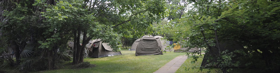 Der Campingplatz ist in kühlen schattigen Umgebung, die von Rasen