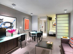 1 BEDROOM KING OR TWIN Balcony, City View, Kitchen – Fully Equipped, Laundry – In-room, Lounge/Dining Area, Telephone with Voicemail Facilities, Electronic Security Lock, In-room Safe, Digital alarm clock, Hair Dryer, Shower over bath, Iron and Ironing Board, Individual Climate Control Air-conditioning, Work Desk with Lamp, Tea & Coffee Facilities, TV- Flat Screen with Radio and Cable TV, TV- Hearing Impaired, In-room Movies (fees apply), iPod docking stations, Broadband & WiFi access available (fees apply), Mini Bar - In-room (fees apply), Pantry/grocery service available (fees apply), In-room Breakfast Packs (fees apply) and Restaurant Delivery Service (fees apply) |