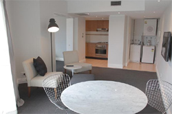 1 Bedroom Grand Deluxe Ideal for the Corporate traveller, rate is for Single or Double occupancy with a Queen bed. Spacious executively designed and furnished apartment, equipped kitchen, bathroom and internal laundry. Additional charges apply for a 3rd occupant, additional bedding, parking and Wifi internet |