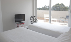 1 Bedroom Superior (Terrace) Rate is for Single or Double occupancy with a Queen bed. Fully furnished apartment, equipped kitchen, bathroom, internal laundry and terrace. Additional charges apply for a 3rd occupant, additional bedding, parking and Wifi internet |