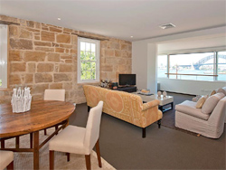 Balmain Wharf Apartments offers 4 separate serviced apartment options for your stay in Sydney. The apartments all feature their original structure and sandstone walls from the 1800’s. Full of character and heritage, a recent refurbishment has seen them redone with modern furniture and fittings. Noted interior designer Romy Alwill (of Domestic Blitz) has put beautiful, unique touches throughout these stunning apartments that enjoy prime waterfront position. All apartments feature: Panoramic views of Sydney Harbour, including the Harbour Bridge, Welcome Basket and wine on arrival, Platinum package Foxtel iQ2 HD, Plasma TV and DVD player, Free ADSL2+ and wireless internet, Bathroom amenities, Bus and Ferry services at the door, Luxury bed linen and fluffy 5 star towels and bathrobes, Fully equipped designer kitchen with refrigerator, crockery, cutlery, glassware and cooking utensils. Free local landline calls and private phone line for each apartment, Audio system featuring an iPod docking station, Room safes, Air conditioning, Weekly clean with fresh linen and towels. (Extra cleaning services available at an extra charge) and Iron and ironing board. |
