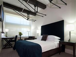 LUXURY MARINA VIEW LOFT SUITE Light filled and airy, split level loft suites with lounge and work area downstairs. The upstairs bedroom offers a king size bed and bathroom with a shower only. Heritage style windows and skylights with water views towards city sky line and The Royal Botanical Gardens. Maximum Capacity: 3 Adults or 2 Adults, 1 Child, utlising sofa bed (Additional person charge applies).Suites are 58 square metres. All rooms are Non-Smoking, 24-Hour Room Service, iphone / ipod docking stations, Fluffy bathrobes, towels and slippers, Oversized working desk, Wireless Internet, Cordless phones, DVD Players, In-room safe, 32" LCD Flat Screen Televisions, Luxurious bathroom products, Munchie box and mini bar |