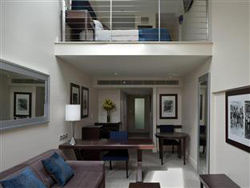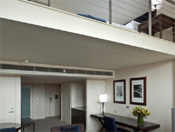 DELUXE PIER VIEW LOFT SUITE Light filled and airy, split level loft suites with lounge and work area downstairs. The upstairs bedroom offers a king size bed and bathroom with a shower only. Heritage style windows and skylights with water views towards Garden Island Naval Base and Potts Point District. Maximum Capacity: 3 Adults or 2 Adults, 1 Child, utlising sofa bed (Additional person charge applies). Suites are 58 square metres All rooms are Non-Smoking, 24-Hour Room Service, iphone / ipod docking stations, Fluffy bathrobes, towels and slippers, Oversized working desk, Wireless Internet, Cordless phones, DVD Players, In-room safe, 32" LCD Flat Screen Televisions, Luxurious bathroom products, Munchie box and mini bar |