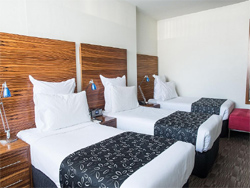 Standard Rooms Providing guests with clean and comfortable accommodation at an affordable rate; our Standard Rooms offer either Twin Share or Triple Bedding; further increasing the value of these high-quality hotel rooms. Fully Refurbished. Twin Single Rooms have Baths, Mini Bar, In-Room Safe and iPod Docking Station |