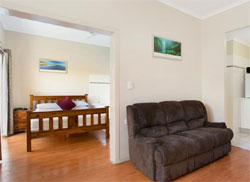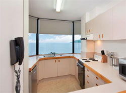 Deluxe Family Room- this air conditioned large studio designed guest room has a queen bed and 2 singles allowing room for 4 people. Suite with Spa Bath- our best room availble is the Suite with Spa Bath, its made up of 2 rooms with one a lounge with kitchen area, and other, a bedroom with a large open corner spa bath. In the lounge is a 42-inch flat screen tv with free in house movies, the kitchenette has a sink and fridge with mini bar. The bedroom has a queen size bed. Ocean View Apartment- this 11th floor spacious two bedroom