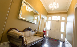 Clydesdale Manor, a boutique bed and breakfast in the prestigious suburb of Sandy Bay, Hobart. Ideally located for both holiday travellers and business visitors alike, it’s within 500 metres of West Point Casino, Royal Hobart Yacht Club, University of Tasmania, the shops and restaurants of Sandy Bay. Its two kilometres from Constitution Dock, Salamanca Place, Battery Point and Hobart’s business centre. Clydesdale Manor is an imposing Georgian style building built in the 1880s as a Gentleman’s residence, set among half an acre of English style gardens it is a National Trust and Heritage Council listed building. A feature of the property is the grandeur and scale of the meandering cedar staircase, 14 feet ceilings and 15 inch high skirting boards. The numerous rooms exude warmth and serenity, the guest lounge has an open fireplace. There are seven spacious guest suites (all with ensuites, two with spa) which have been tastefully furnished with quality soft furnishings and specially selected antique furniture. Our famous gourmet breakfast is served in a delightful verandah style room overlooking the formal rear gardens and fountain. Clydesdale Manor is a multi-award winning property, regularly wining Tasmanian and Australian Tourism Awards. Private, peaceful and beautifully presented accommodation surrounded by exquisite gardens and capturing stunning views of the majestic Mount Wellington, Clydesdale Manor offers you luxurious accommodation. We provide a fully cooked breakfast in the stunning, sun filled breakfast room along with complimentary port and Tasmanian fudge served each evening in the guest lounge. Book early to avoid missing out on this great Hobart accommodation. |