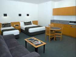 Our studio rooms have kitchenette facilities - perfect for those who want to dine in their room. For the convenience of guests a variety of kitchen utensils are provided. These rooms comfortably accommodate 3 adults or 2 adults and 2 children. For those who need more beds, ask about our Interconnecting rooms, with a family room and studio room combination, available on request. Cots can be requested. |