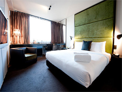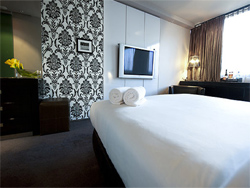 DELUXE ROOM Spacious and stylish with a focus on design, the Deluxe room is ideal for retreating after a long day in the office or exploring the sights of Sydney by coming back to a luxurious King bed with MicroCloud bed topper. Revel in the comforts including modern en-suite, T2 tea and coffee making facilities, reverse cycle air-conditioning and plasma TV. |