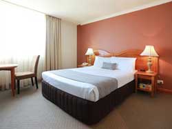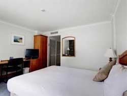 DELUXE QUEEN Deluxe hotel room with queen bed. Room includes tea and coffee making facilities, iron and ironing board, mini-bar, 24Hr in-room dining, cable television and iIn-house movies, private facilities with bath and shower and hairdryer. Wireless internet available at additional charge. |