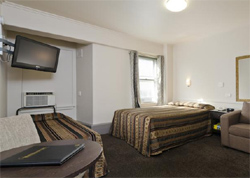 Standard Single Room- standard single room. Room has a single bed. Rates are for 1 person. Maximum occupancy is 1. Room is of 4 star standard. Standard Double Room- room has 1 double bed and 1 pull out couch. Maximum Guests Included in Price is 2. Maximum occupancy is 3. Extra persons per night . Bedding configuration is a queen size bed and a single fold out couch. Room Features include ensuite bathroom with shower, open windows, Iron and ironing board, radio, hairdryer, alarm clock, tv, kitchenette tea and coffee, bar fridge. |