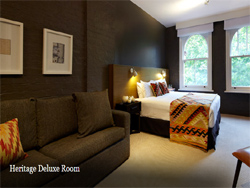 Heritage Deluxe Room Beautiful Sydney Harbour Hotel With Views & Surrounds Looking for a Sydney Harbour Hotel? Spacious Heritage Deluxe Room featuring a modern open plan design with a king size bed, double sofa bed and an en-suite bathroom. Complete with LED TV, Foxtel, digital on-demand movies, IPod docking station, in-room safe, individually controlled air-conditioning, mini bar, bathrobes and hairdryer. Decorated in rich heritage tones and complemented by soft lighting this room captures the historic ambience of the heritage-listed property. |