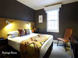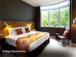 Heritage Room Enjoy the home comforts of this Sydney hotel accommodation The perfect Sydney hotel accommodation, Heritage rooms are appointed with a queen size bed and offer all the comforts of a “state of the art” hotel. Decorated in rich heritage tones and complemented by soft lighting, standard rooms offer a cosy place to rest at the end of a busy day. Ensuite bathroom, Reverse cycle air-conditioning, 32” LED television, Iron & ironing board in each room, internet access, In room safe, Hair dryer, Work desk, Mini bar, Tea and coffee making facilities, iPod docking station and Luxury amenities |