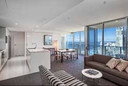 ONE BEDROOM RESIDENCE Enjoy the view in a one-bedroom residence, where vast windows frame a panorama of the beautiful Gold Coast Hinterland and Surfers Paradise skyline. The versatile open-plan layout of an extra-spacious residence and the convenience of a modern laundry and fully-equipped kitchen with state-of-the-art appliances makes it an ideal retreat for a few day or a few weeks. The residences are made even better with Hilton’s world-famous service and hospitality coming as a standard. TWO BEDROOM DELUXE RESIDENCE World-renowned Hilton hospitality meets spacious contemporary living in a two bedroom deluxe residence. With separate living and dining areas, private balconies and over-sized bathrooms, as well as all the convenience of your own kitchen and laundry, these generous residences have everything you need for a relaxing stay with family or friends and then some. Vast windows infuse the space with abundant light and showcase spectacular views of Surfers Paradise and the Gold Coast Hinterland. TWO BEDROOM SKY RESIDENCE Imagine waking up to the picturesque outlook of the Surfers Paradise skyline and glorious Gold Coast. Located on the upper floors of the hotel, level 33 and above, a two bedroom sky residence takes indulgence to a whole new level combining the exceptional benefits of a modern kitchen and laundry, separate living and dining areas, private balconies and over-sized bathrooms with all of Hilton’s five star services. FOUR BEDROOM RESIDENCE - OCEAN VIEW The spectacular four bedroom deluxe ocean residence is ideal for families and groups, comfortably sleeping up to 10 people. Prepare meals in the fully equipped kitchen, complete with Miele appliances, which overlooks the generous living and dining areas, as well as the clear blue waters of the Pacific Ocean. The master bedroom with en suite bathroom can transform into a room with two single beds and three additional double rooms offer more space and privacy. Enjoy all the comforts of home with functional amenities such as a washing machine, dryer and laundry tub and stay entertained with a 37-inch television and iPod docking station. |