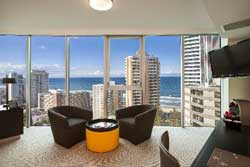 KING RELAXATION ROOM Feel the stress melt away in a relaxation room, where spanning windows showcase breathtaking vistas over the beach and ocean. The additional space in this 54sqm room provides the ideal environment to enjoy a freshly-brewed Nespresso coffee. A bathroom complete with walk-in shower and luxury amenities, is an indulgent space to rejuvenate the senses and for the ultimate escape retreat enjoy access to the hotel’s spectacular 15th floor executive lounge, offering panoramic views over the best of the Gold Coast, continental breakfast and sunset drinks. |