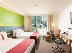 You can travel around the city area on the efficient Light Rail from the nearby stop at Paddy's Markets, where you'll bag discount clothing and souvenirs. Marvel at sea life through a glass-bottomed boat at Sydney Aquarium, a 10-minute walk away, and take in the iconic Sydney Harbour Bridge and Opera House on a harbour cruise. Our location on the city-side of Darling Harbour means it's a breeze to get to the Central Business District, 500 metres away, and Circular Quay, 1km away. It's less than a 10-minute stroll to meetings at big companies like PriceWaterhouseCoopers, Nestlé, Telstra and the Commonwealth Bank of Australia. Events at the huge Sydney Convention and Exhibition Centre are 5 minutes on foot from Holiday Inn Sydney Darling Harbour. Wash down bar snacks with boutique beers like Pure Blonde in bright JBs Bar at Holiday Inn Sydney Darling Harbour. You can work up an appetite in the MiniGym and sauna on our 3rd floor. The Holiday Inn Darling Harbour is well located at the southern end of Sydney's premier entertainment precinct. The very best of Sydney's shopping, sightseeing and attractions are all within easy access of the hotel. Getting around town is made easy with the local free shuttle service that operates down George Street regularly throughout the day. Enjoy the very best of Sydney as to offer. |