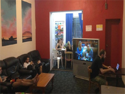 Blue Room The world famous Blue Room is bound to be a highlight of your time at Hump Backpackers Hostel, Sydney. The room provides a venue to party within the hostel all night long with fellow travellers and is the ultimate way to meet new friends over a drink. The Blue Room is equipped with a wall mounted TV, an incredible graffiti mural and an unbeatable outlook onto Kings Cross through the massive tinted windows. TV Room If you feel like chilling out with your feet up, our TV room is the place for you. With a massive TV featuring over 100 cable channels, you can catch up on movies, watch the latest sport, or indulge in a bit of trashy reality TV! You can also grab one of the books from our library and sink into our comfy leather sofas while you unwind. The Courtyard What better way to enjoy a summer’s afternoon than sipping on an icy cold beer, eating a sausage sandwich with the sun hitting your back. |