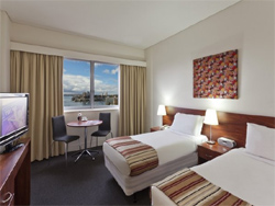 Harbour View Twin Self contained studio apartment,bedding 2 single beds. Sleeps maximum 2 people. Features: Air conditioned, Television, Hairdryer, Oven, Non-Smoking Rooms, Telephone, Clock Radio, Toaster, Attached Bathroom, Desk, Iron/Ironing board, Tea/Coffee Making, Cots Available, Alarm Clock, Kitchenette, Fridge - Bar Fridge, Two Single beds, Ipod Dock, Microwave and Room Service |