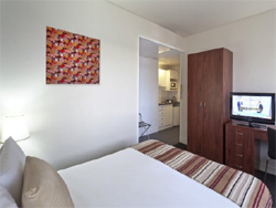 District View Twin Self contained studio apartment,bedding 2 single beds. Sleeps maximum 2 people. Features: Air conditioned, Television, Hairdryer, Oven, Non-Smoking Rooms, Telephone, Clock Radio, Toaster, Attached Bathroom, Desk, Iron/Ironing board, Tea/Coffee Making, Cots Available, Alarm Clock, Kitchenette, Fridge - Bar Fridge, Two Single beds, Ipod Dock, Microwave and Room Service |