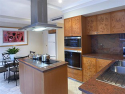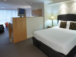 Executive Studio Apartment The Executive Studio Apartment is a split level open planned apartment averaging 38 square metres in size. Each apartment consists of a queen sized bed, marble bathroom, sunken lounge and fully equipped gourmet kitchen. Please note there is no twin bedding available. Suitable for one to three people, there is also a single sofa bed in the living area available for use at an additional cost. |
