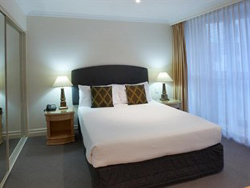 1 Bedroom Deluxe The One Bedroom Deluxe Apartment consists of a queen size bed, marble bathroom, open planned lounge area, fully equipped gourmet kitchen and study area. Please note there is no twin bedding available. Suitable for one to three people, the single sofa bed in the living area is also available for an additional cost. |