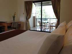 STANDARD ROOM Includes a flat-screen television with DVD player, modern bathroom, heating and air conditioning. Upstairs rooms have a private balcony overlooking parklands. Downstairs rooms have a private patio for extra living space. |