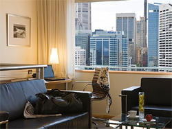 With either one or two bedrooms they provide the perfect escape for couples, families, friends travelling together, or simply those who prefer some extra space whether travelling for business or pleasure. With stylish decor, the Loft Suites offer a downstairs living area with day-bed, bar area, desk (to seat three and perfect for small meetings), guest bathroom and 3 flat screen LCD TVs. Upstairs a second living area awaits with its own Panasonic CD stereo, dedicated work desk and ergonomic office chair. Our One Bedroom Loft Suites comprise a separate bedroom with brand new king bed, second work desk, walk in wardrobe and adjoining en-suite with twin vanity, spa bath and separate shower. In addition, the Two Bedroom Loft Suites offer the convenience of an additional bedroom adjoining the living area complete with LCD TV, spa bath and shower. Bringing a new standard of Sydney accommodation to Darling Harbour, Novotel's Loft Suites provide the perfect vantage point from which to enjoy all that this fabulous precinct has to offer. |