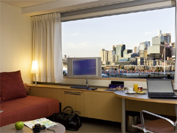 PYRMONT VIEW ROOM Enjoy great views across the ever-growing and popular Pyrmont area from this contemporary Sydney city accommodation. It comes with all the usual facilities: work desk, ergonomic chair, high speed internet, daybed sofa and contemporary design. The Pyrmont View Room is also available in twin (2 x double beds) configuration. Up to 2 children (16 or under) stay free if using the existing bedding. No rollaways available for this room type. SUPERIOR DARLING HARBOUR VIEW This room offers you a stunning view of Darling Harbour and the panoramic Sydney skyline. Whether you require a comfy queen bed or two doubles, our spacious Darling Harbour View accommodation provides ample space to unwind after a busy day of meetings or exploring the many attractions of Darling Harbour. Each room features a desk, flat screen TV with movies on-demand, high speed internet access and mini-bar. The bathrooms are spacious with glass shower screens, big fluffy bath sheets, contemporary vanity units, excellent lighting and a great range of amenities. |