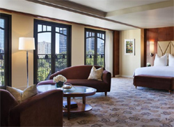 Deluxe- magnificent cathedral, city or garden views welcome you to a spacious 60 square metre art deco inspired room featuring one king bed, lounge chair with ottoman, and generous work area with high speed Internet access. Suite- this 55 square metre suite features elegant furnishings and rich decor with meticulous attention to detail, reflected in a plush king bed, separate study with high speed Internet access, and Italian marble bath featuring walk in shower and bath tub with inset TV. |