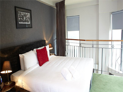 TWO BEDROOM LOFT For when space matters, the split level Two Bedroom Loft glows with natural light, emphasising the vibrant and earthy tones throughout. The open plan living and kitchenette area is equipped with FREE WiFi Internet, a TV with Foxtel, sofa bed that can sleep up to two people and an iPod docking station. Upstairs boasts two bedrooms - the Master Bedroom is equipped with thick curtains to cocoon the King bed and keep the daylight out plus MicroCloud mattress topper transforming an average night sleep into a blissful memory. The second bedroom features two single beds and an en-suite with rain shower and corner bath tub. |