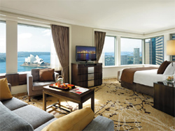 EXECUTIVE GRAND HARBOUR VIEW ROOM Breathtaking views of the stunning Sydney Harbour. These rooms offer breathtaking views of Sydney Harbour, Sydney Harbour Bridge and the Sydney Opera House. Located on levels 24-29 of the hotel, these rooms feature modern design and comfortable window seating to enjoy Sydney's famous harbour. Panoramic views of Sydney's iconic landmarks. Full-size executive writing desk, International Direct Dial telephone with dual lines, Independent fax line, Electronic safe and Coffee / tea-making facilities, Mini-bar. |