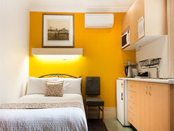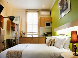 Double Studio Room Features: Air conditioned, Shared Bathroom, KitchenetteToaster, Wireless Internet, Fridge - Bar, Fridge, Broadband, Internet Access, Tea/Coffee Making, Microwave, Linen and Towels Provided, Room Safe, Iron/Ironing board Desk, Weekly Room Service, Double Bed, Hairdryer, Ceiling Fans, Television, Non-Smoking, DVD Player, Heating |