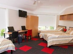 | The room features a generously-sized ensuite with WC, shower and vanity; a study desk area with desk chairs, quality bedding and mattresses, bedside tables, a bookshelf and large, spacious wardrobes for you and your two room-mates. We are committed to providing high-quality , fully-furnished student accommodation featuring a rich, community environment that will underpin a superb lifestyle, including a swimming pool in the complex’s central courtyard, so you can lounge around and enjoy the Sydney sun or cool down while you relax in your downtime. The complex also features a number of communal living and kitchen/food preparation spaces and a great support network which encourages students to come together and form lifelong friendships. To ensure your home becomes an oasis in your busy student life, there will also be 24-hour management and security, internet access from all rooms, BBQ areas and common kitchen and laundry facilities. |