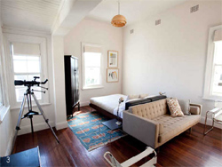| Think faded glory outside as per Venice and Firenze with clean creative spaces therein, tall ceilings with French doors opening onto large verandahs - More Corbusier than Chippendale, not too twee, not too quiet, more boho than 5 star, more artist's digs than the Hilton or a cottage in the country! It has to be said that we offer an urban experience as per Soho, New York, rather than a sojourn in an English rural setting. This is comfortable, informal accommodation and our guests are many and varied including businesspeople, academics, travellers of all ages from home and abroad, architects, writers, musicians, actors and other creative souls with an eye to the good life. We extend a warm welcome to travellers one and all and hope this will be your preferred place to stay when visiting Sydney. |