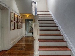 There are four rooms available, one suite downstairs with its own dedicated bathroom, three upstairs, one with a generous en-suite and two sharing the luxurious marble bathroom. The downstairs suite has two rooms, each 25 square metres with the bedroom having a queen upholstered bed. This room is linked by high double folding doors to the private sitting room which has a sofa bed that opens to a comfortable double bed with an inner spring mattress. It also has a piano for the musically inclined. Both rooms have marble fireplaces and the bedroom has double French doors onto the verandah and has its own dedicated bathroom down the hall. |