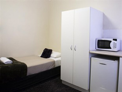 Budget Single Room A great option for 1 person travelling on a budget, our Budget Single room is simply furnished with a small single bed, digital LCD TV and fridge. Shared bathroom facilities. Wireless internet available. Room Features: Small Single Bed, Shared Bathroom Facilities, Wi-Fi Internet (Charges Apply), Bathroom Amenities, Bar Fridge, Ceiling Fan, Linen and Towels Provided, Non Smoking Room and Telephone |