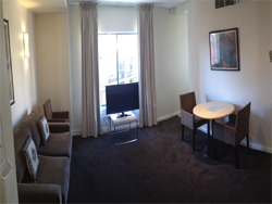 Deluxe One Bedroom Apartment Completely renovated One Bedroom Apartment, queen bed, new modern bathroom, kitchenette with new m/w & cook top, Lounge/Dining area, LCD flat screen TV, A/C & Telephone. |