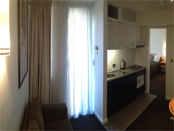 Deluxe Studio Suite Completely renovated Studio Apartment, queen bed, new modern bathroom, kitchenette with new m/w & cook top, Lounge/Dining area, LCD flat screen TV, A/C & telephone. Balcony |