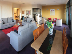 The 280 sqm apartment is very spacious and accommodates 8 people comfortably with King Bedding in the master room, queen bedding in the second and third rooms and 2 single beds in the fourth bedroom. The apartment is expansive making it ideal family accommodation. It also has reverse cycle air conditioner, foxtel cable TV, direct dial telephone and wireless broadband internet which is available through Tomizone. The Waldorf Lounge offers a complimentary light breakfast every day and a relaxing environment throughout the day. All linen is provided for the apartment and a weekly maid service for stays of 7 days or more. Secure onsite parking is available at an additional cost. Apartment is suitable for both short or extended stay accommodation. |