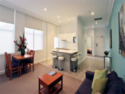 Waldorf Woolloomooloo Waters offers comfortable, well appointed studio, one, two, three plus a four bedroom apartment. The serviced apartment complex is located on the edge of the city. The spacious size of our hotel apartments, which are almost double the size of a standard hotel room, makes them ideal for small business travel and meetings as well as family Sydney accommodation. All apartments have reverse cycle air conditioning, foxtel cable TV, direct dial telephone and wireless broadband internet which is available through Tomizone. |