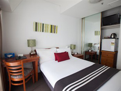 Studio Room Stylish private room with queen sized bed, ensuite bathroom and self catering facilities including microwave, toaster, LCD TV, fridge, iron, hairdryer, toiletries, in room safe, phone and wireless broadband. Includes Continental Breakfast |