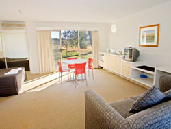 Accommodation Yowani Country Club offers 24 modern, self contained motel units situated next to the Southwell Park sporting complex at the corner of the Federal and Barton highways in Canberra’s inner north. The city centre is only 6 kms away along Northbourne Avenue, and the bustling Dickson shopping and restaurant precinct is just 1 km from our front door. All of our units are serviced daily and have a queen size bed and a double sofa couch, ensuite bathroom, heating and air conditioning. An additional single bed can be supplied if required. |