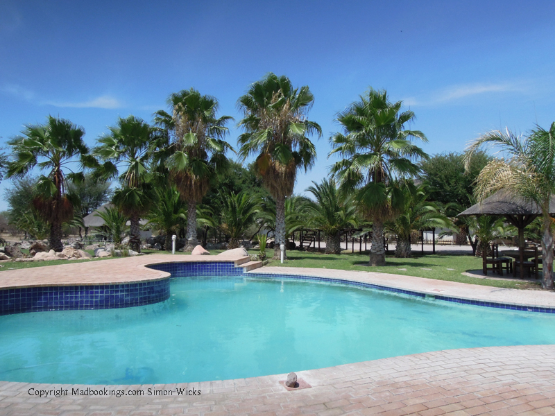 The lodge has risen like the phoenix from the barren wastes of the Kalahari in amazing fashion and its main building and satellite chalets are attractive in design.