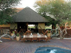 The setting of Haina Kalahari Lodge is classically African, relaxed and informal. The Main Boma consists of a lounge, dining room and bar area decorated in wood and thatch.