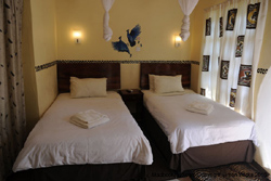 Accommodation consists of 10 air-conditioned double rooms with en-suite bathrooms and toilets, DSTV, and access to a swimming pool. The rooms are built around one side of a central circular courtyard on two floors and are situated at the back of the lodge.